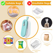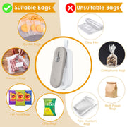 No Preheating Required: One press to work, just turn on the chip bag sealer then press and slowly slide the bag to sealing without preheating, makes this mini sealer very convenient to use.