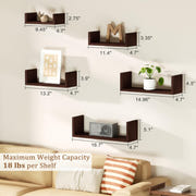 Increased Storage Space, Enhanced Tidiness:Designed with 5 wood shelves in varying dimensions , these versatile wall shelves serve as the best storage solution to stylishly display your pictures, plants, decorations, collectibles, trophies, and more.