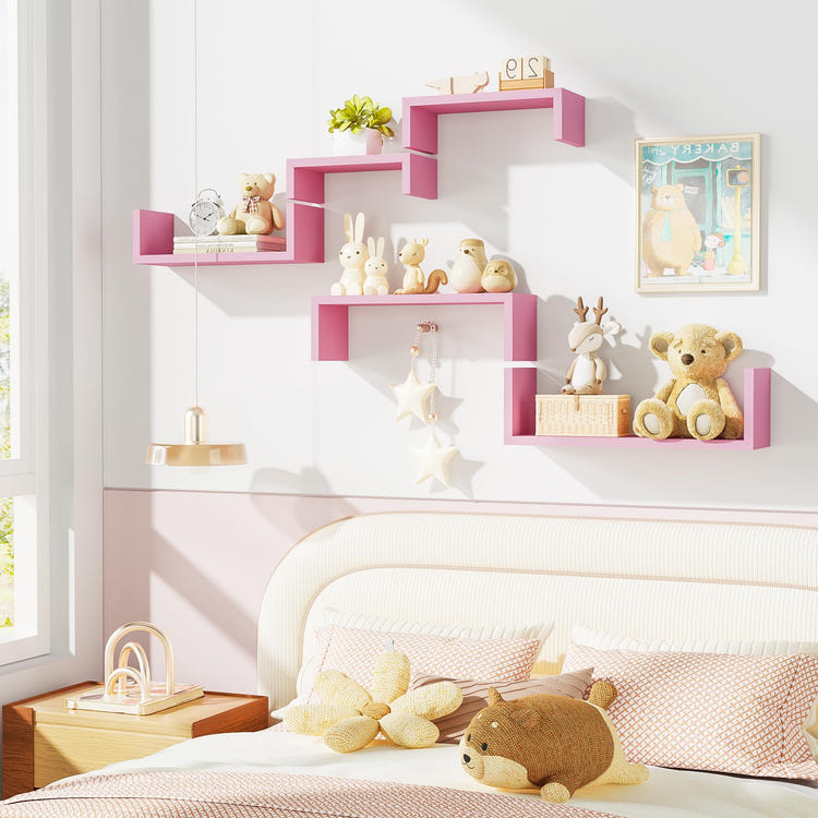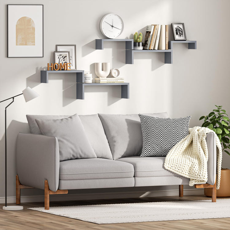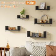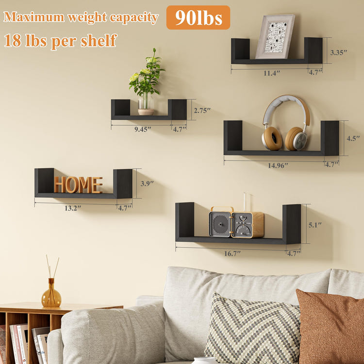 Multiple Display Options:These shelves set of 5 offer reversible installation and flexible arrangement options in different configurations like 2+2+1, 2+3, 3+2. Created to suit your diverse needs and preferences, these shelves enable you to personalize your space, unleash your creativity, and optimize functionality.